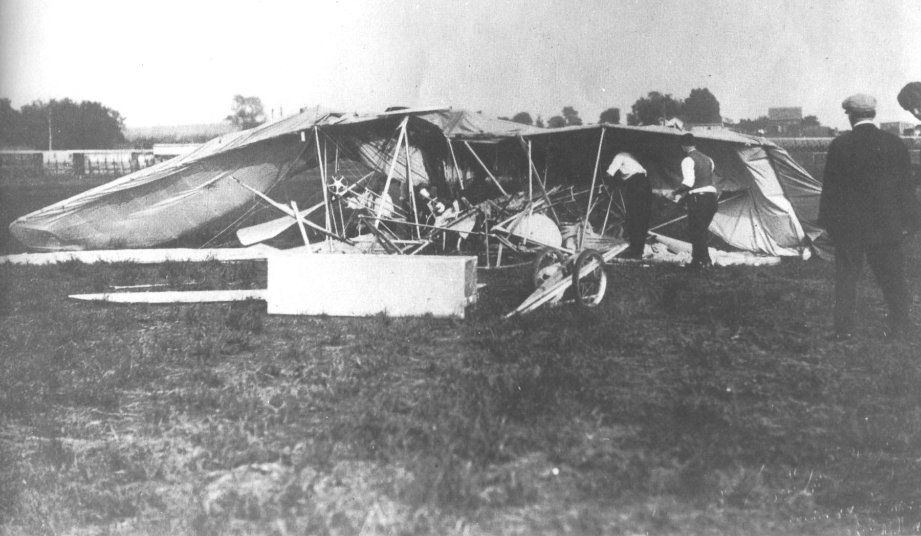 Ralph Johnstone crashes and dies in Denver, November 17, 1910. He was a member of the Wright Exhibition Flying Team.