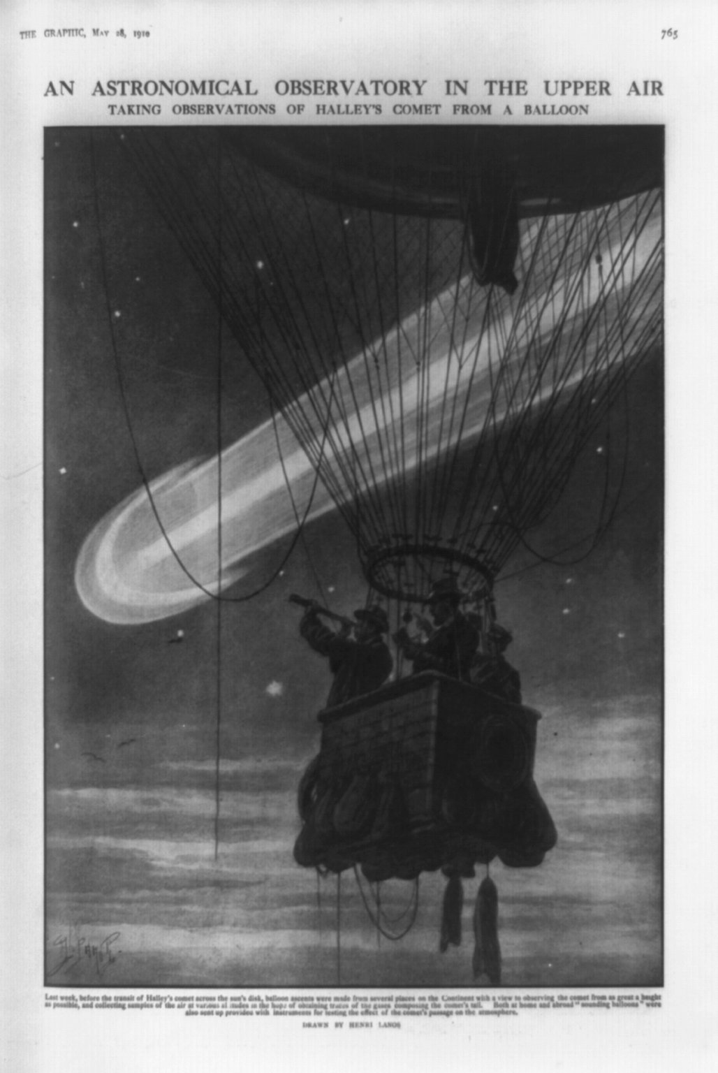 Scientific balloons could climb above most of the Earth's atmosphere and thus, look into space without interference. Here, an early scientific balloon is observing Halley's comet. [larger image]