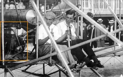 Walter Brookins (left) and Frank Coffyn prior to takeoff on the beach, Atlantic City.
